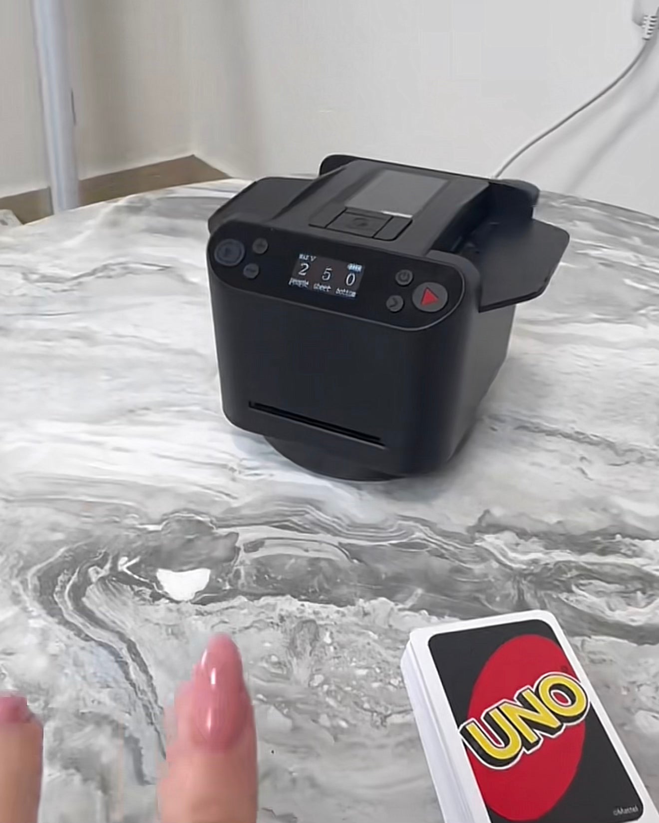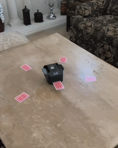 Het apparaat is echt snel en maakt weinig geluid. Geen frustraties meer bij het schudden van kaarten – gewoon op de knop drukken en klaar.
